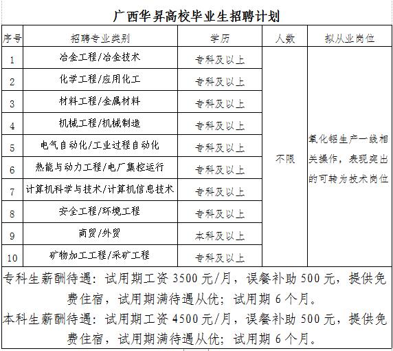 说明:上述相近专业或非上述专业理工科专科及以上学历毕业生,综合表现良好,接受倒班作业、有意愿到氧化铝生产一线操作岗位工作的,也可报名。